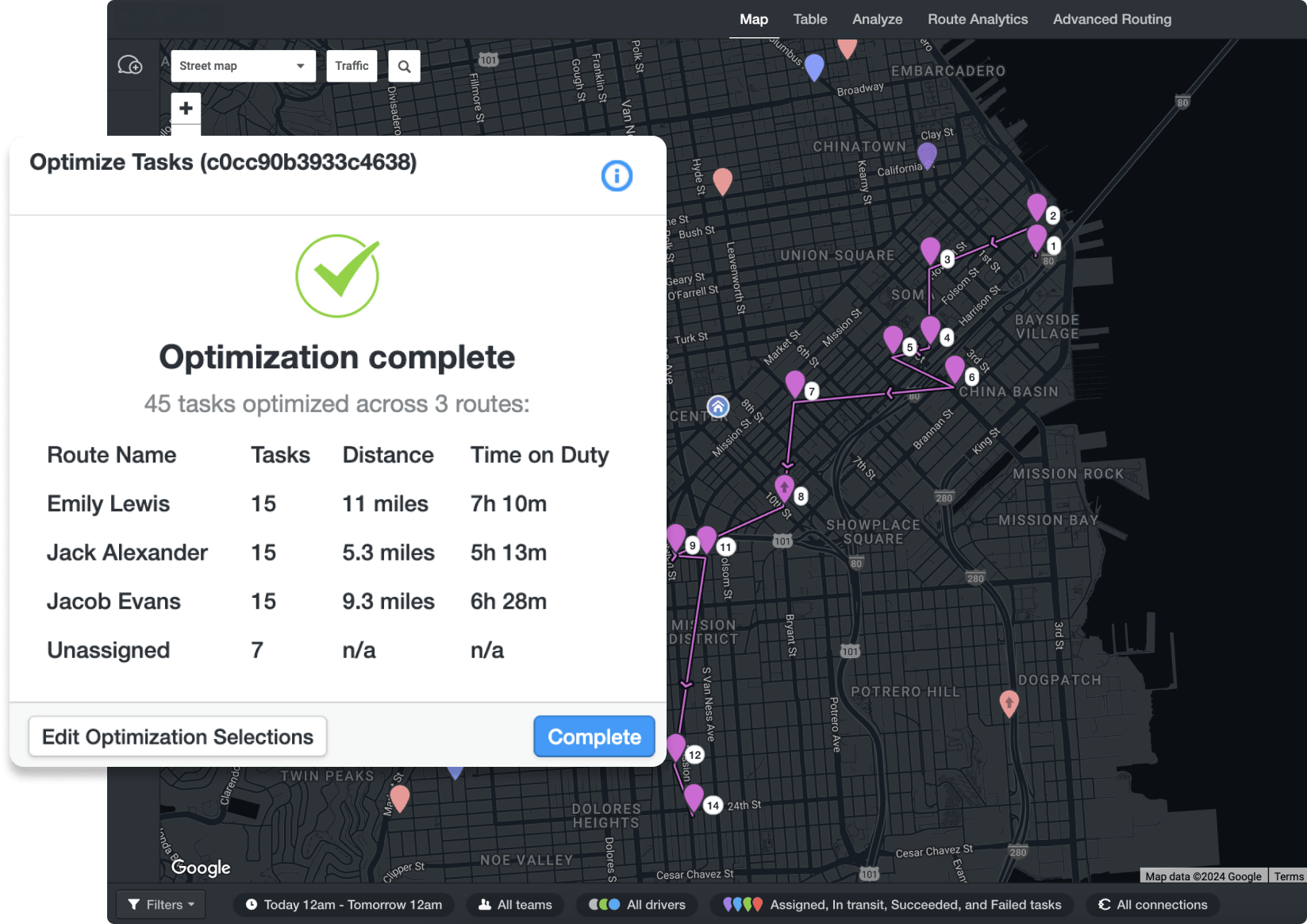 Our logistics technology platform ensures seamless delivery of critical healthcare supplies by leveraging advanced features like driver trackability, route optimization, and job auditing. Real-time GPS tracking provides full visibility into driver location and status, enabling proactive management and rapid response to urgent needs. Intelligent route optimization minimizes delays and reduces costs by factoring in traffic patterns, delivery windows, and compliance requirements.